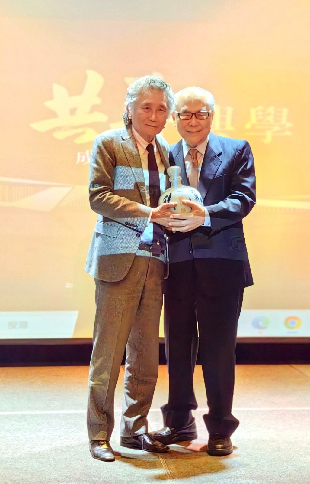 114.2.16 【共善興學感恩餐會】高承恕董事長感恩謝振裕名譽總會長對於逢甲大學40年來真心的奉獻,敬贈紀念酒以表謝意。